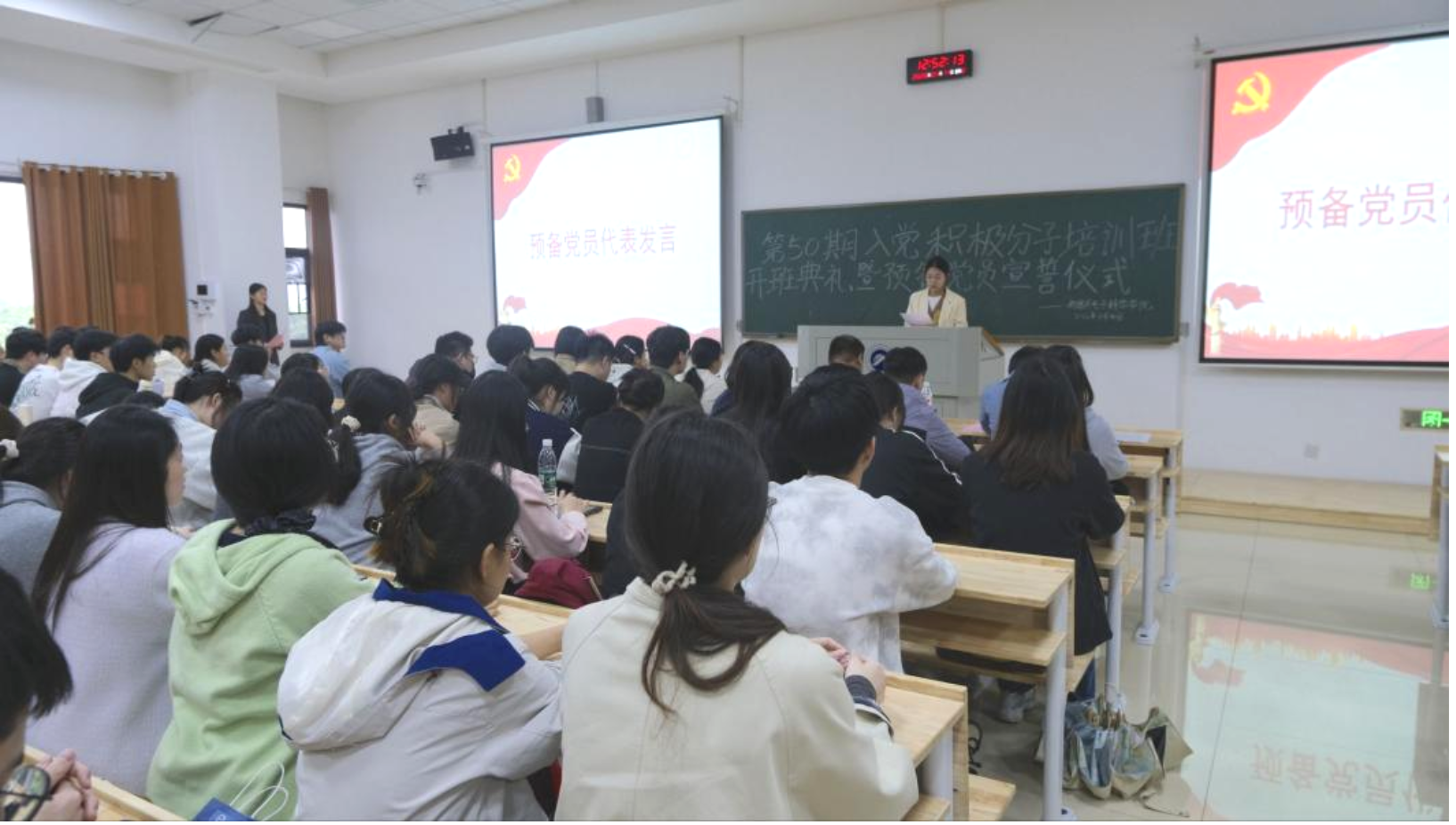 为严把党员发展入口关,强化入党积极分子思想淬炼,规范预备党员教育管理,4月14日中午,w88优德 2026年上半年入党积极分子培训班开班典礼暨预备党员宣誓仪式在敏行楼C512举行。w88优德 党委副书记、分党校副校长贺玲,w88优德 组织员、研究生第一党支部书记龙睿,团委书记、本科生第三党支部书记陈涵出席活动,第50期入党积极分子及预备党员近200人参加,活动由学生党建工作办公室发展部王瑀琪主持。